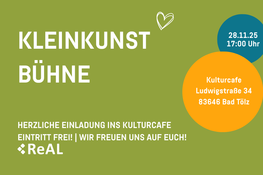Das Kulturcafé lädt sonntags sowie montags, dienstags und mittwochs ab 14 Uhr zu Kaffee & Kuchen ein — freitags gibt’s ab 17 Uhr besondere Schmankerl. Außerdem findet dort halbjährlich die Kleinkunstbühne statt. Die Räume können zudem für eigene Veranstaltungen gemietet werden – Organisation und Catering übernimmt das Team des ReAL Verbunds.